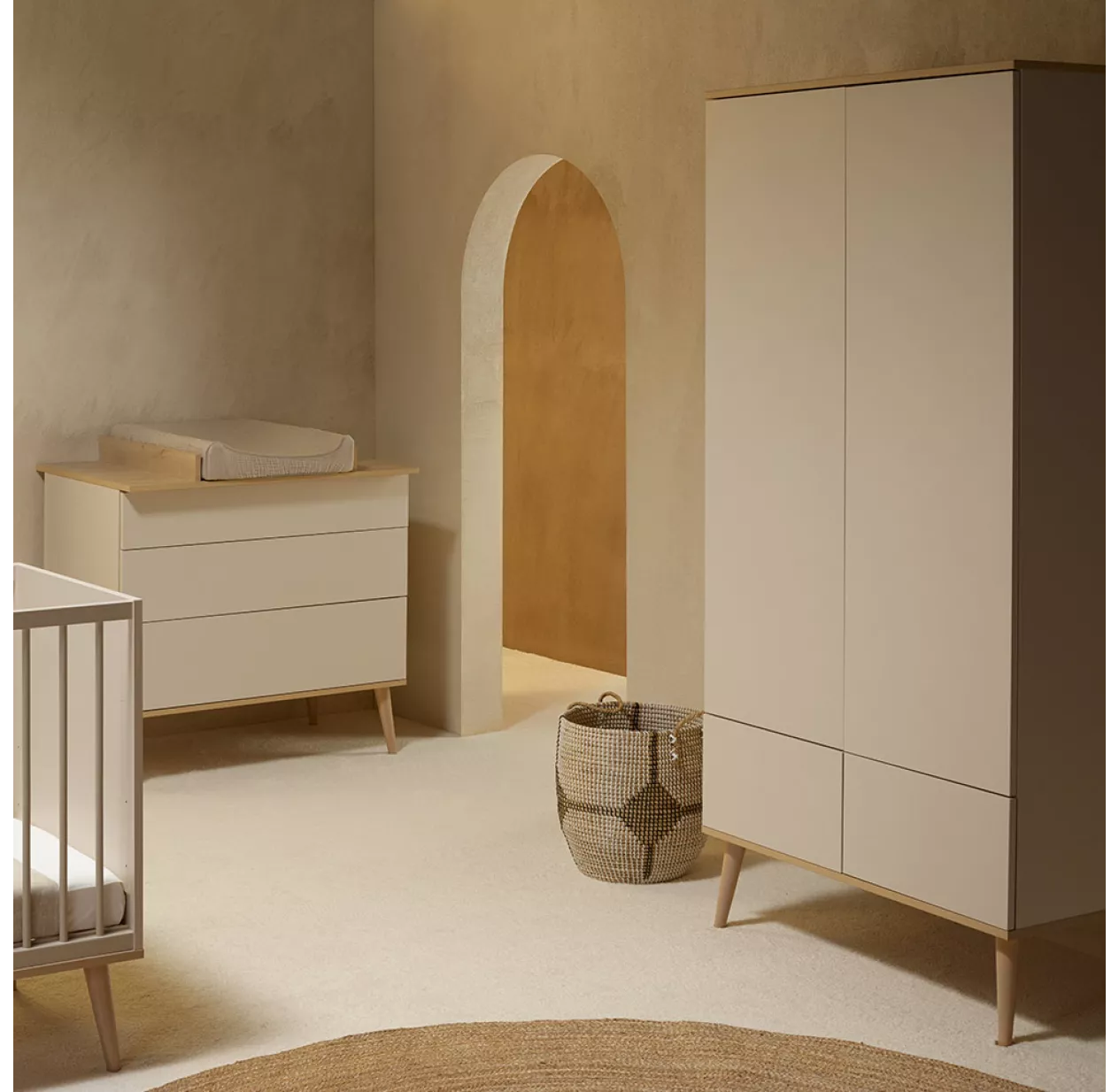 Inspirée par la nature, la collection de mobilier Flow de Quax offre un design minimaliste, des tons doux apaisants et des matériaux naturels. La chambre bébé et la chambre enfant se transforment en une oasis de paix, un espace de respiration qui invite à la détente et à apprécier une forme de sobriété.