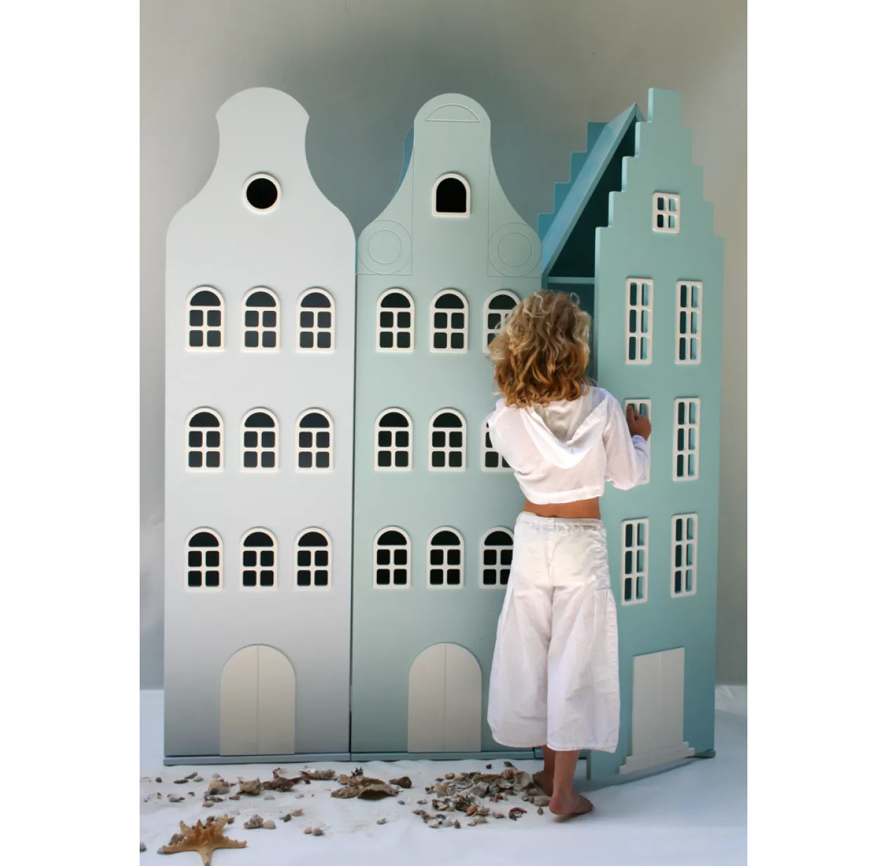 Amsterdam est une armoire en forme de maison hollandaise. Toute en longueur, avec un faible encombrement au sol, elle fait office de bibliothèque, de penderie ou de maison de poupée. Alignées côte à côte, ces maisons colorées peuvent aussi former une cloison de séparation pour la chambre de vos enfants. Nous, les Enfants du Design, on a craqué dessus la première fois qu’on l’a vue. C’est un très bel objet qui a en plus le mérite d’être pratique, ludique, poétique… Si on avait demandé à un enfant de dessiner une armoire pour sa chambre, peut-être même qu’il aurait dessiné celle-là.