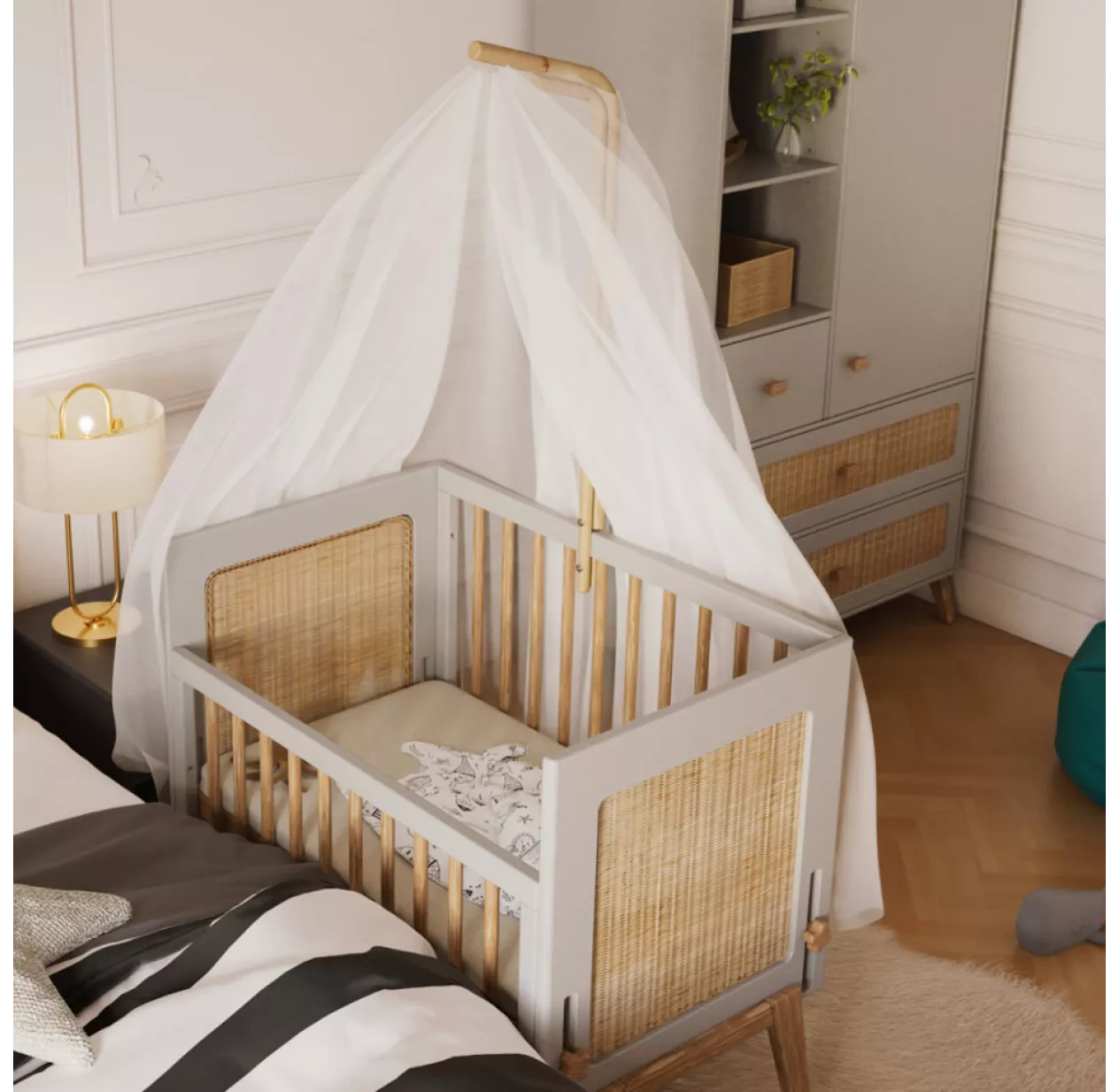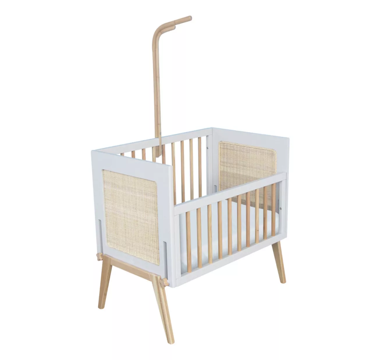 Coup de coeur pour cet adorable berceau cododo en rotin et cèdre massif. Livré avec sa flèche, le berceau cododo Marélia de Théo s’ajuste en hauteur au lit des parents sur 18 cm entre la position basse et la position haute. Son couchage de 50 x 83 cm accueille votre bébé de la naissance à 9 mois environ. On craque pour le style délicatement rétro de ce berceau cododo en bois et cannage de rotin. En associant subtilement bois et rotin dans ses collections de mobilier enfant, la marque Théo propose un style de chambre à la fois contemporain et rétro qui apporte un vent de fraîcheur dans l’univers de la déco enfant.