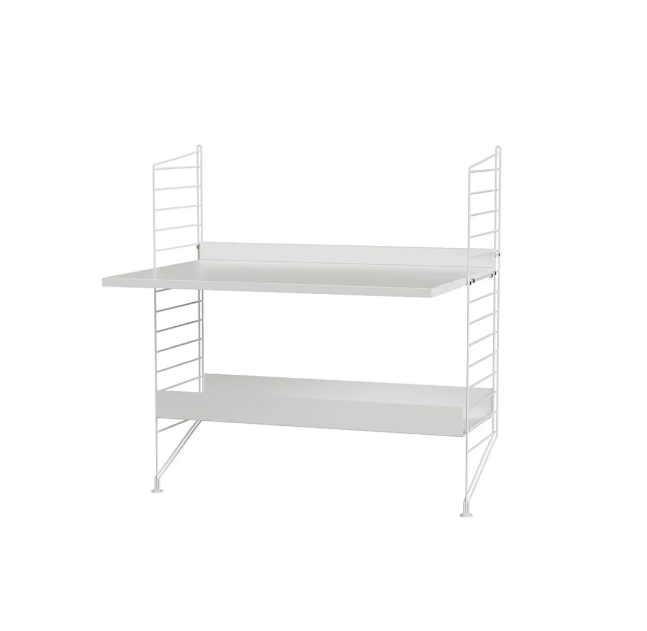 Vous pouvez aussi composer votre bureau STRING dans d’autres finitions: chêne, noyer, gris ou noir laqué…