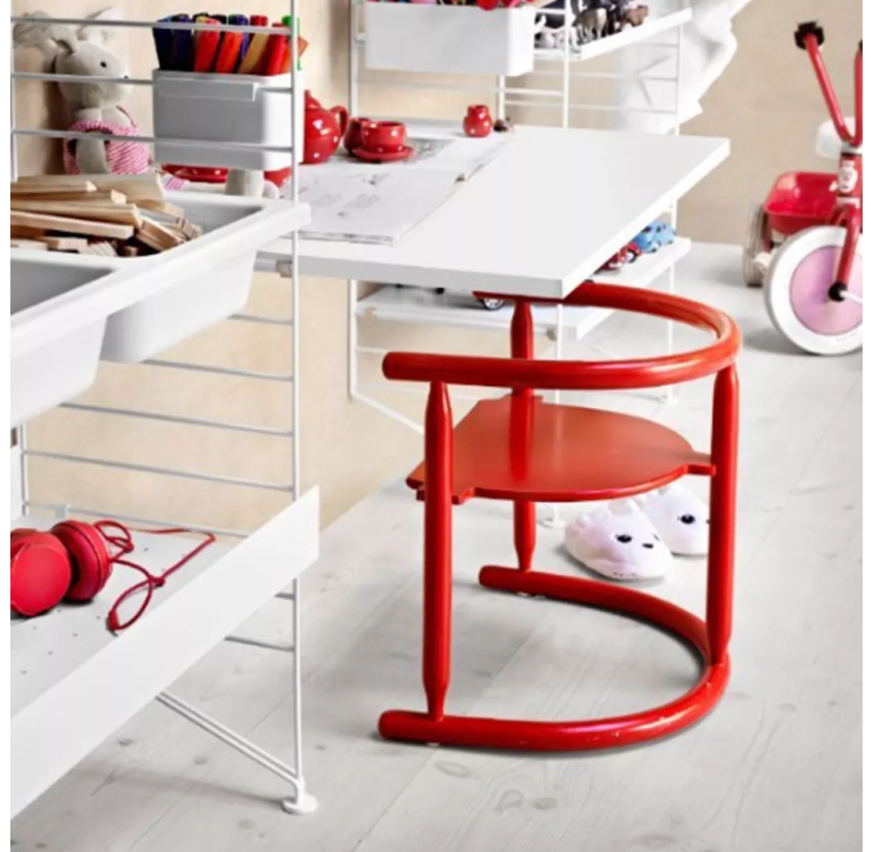STRING est un système modulable d’étagères murales imaginé par Nisse Strinning en 1949.