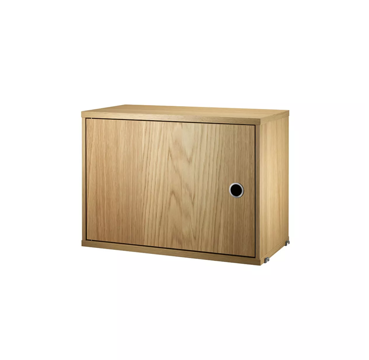 STRING est un système modulable d’étagères murales imaginé par Nisse Strinning en 1949. Ce caisson en chêne 1 porte de 58 cm de large s’adapte aux portants muraux et portants au sol String. Vous pouvez créer votre propre composition murale grâce à ce caisson et créer un maximum de rangements. La porte peut être montée de chaque côté du caisson. Le caisson se compose d’une étagère intérieure ajustable et les dimensions intérieures sont les suivantes : l54 x p26 x h38 cm.