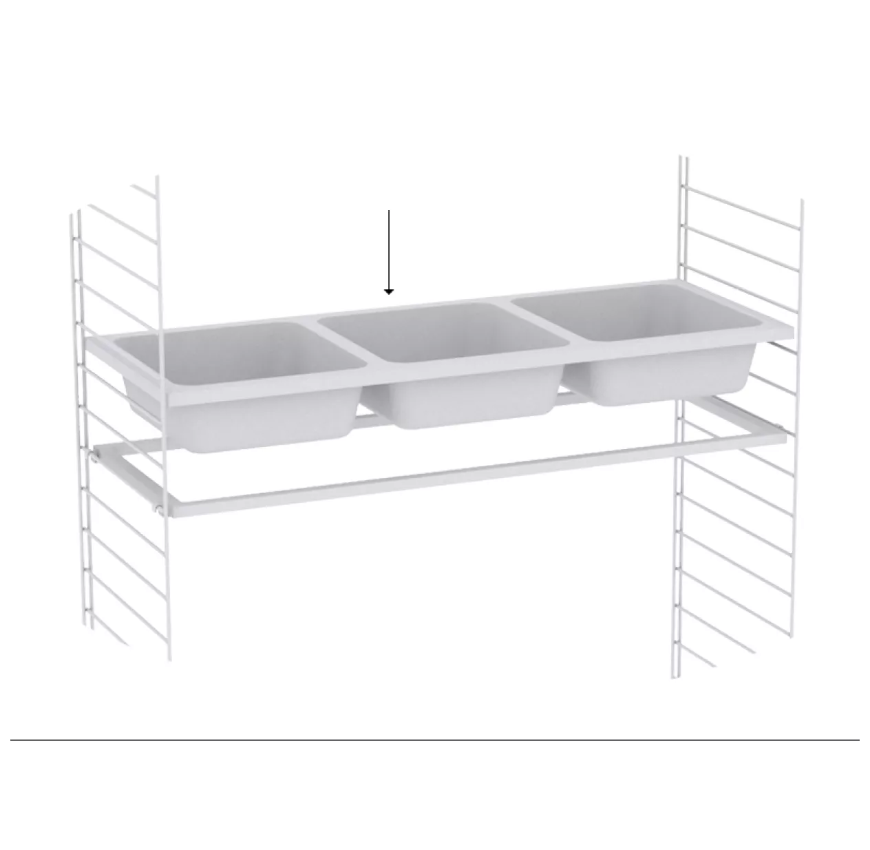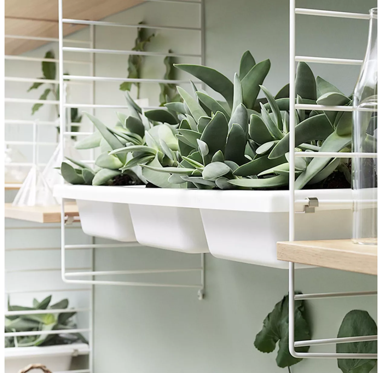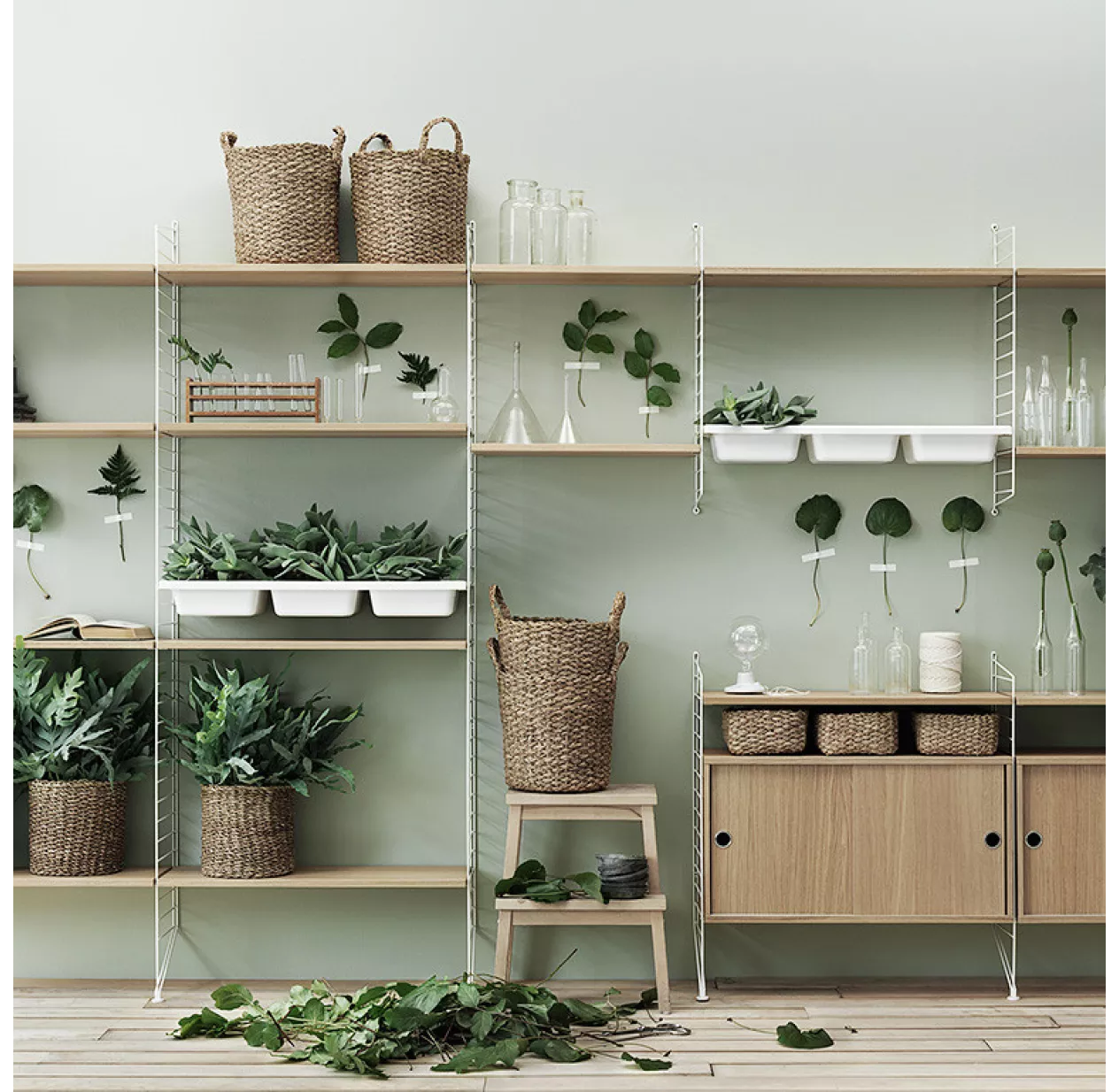 Vous pouvez également rajouter les caissons de rangement, le plateau de bureau, les étagères métalliques ou en bois, la table murale pliante et tous les autres rangements modulables String. Vous pouvez aussi mélanger les couleurs.