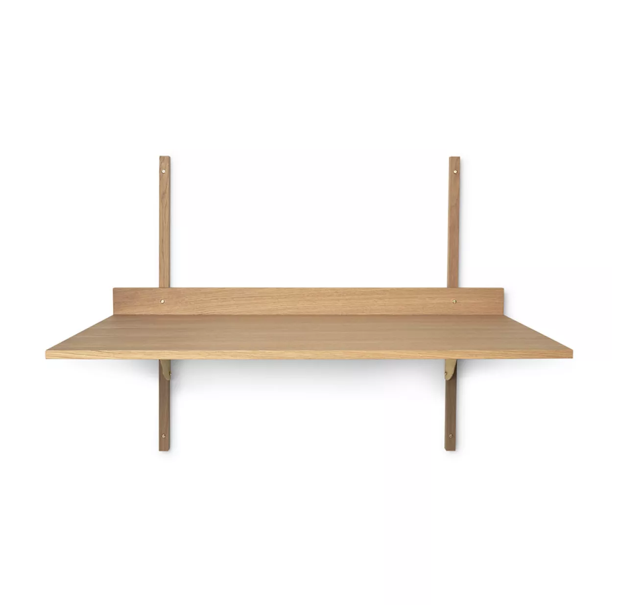 Le système modulaire Sector revisite l’étagère murale du milieu du siècle dans une version moderne et fonctionnelle. Le système mural Sector affirme une simplicité robuste dans un esprit naturel et minimaliste. Cette version du bureau mural Sector associe placage de chêne naturel et laiton. Il est aussi disponible en placage de frêne teinté noir et ses supports en laiton poli existent également en laiton noirci. Le bureau mural Sector de Ferm Living se fixe au mur avec des montants en bois massif et des vis apparentes. Il est idéal pour créer un espace de travail dans une petite chambre, un hall d’entrée ou dans un coin du salon. Il s’associe parfaitement aux étagères Sector qui se déclinent dans les mêmes couleurs et finitions.