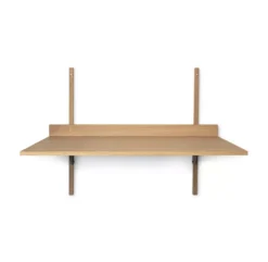 Le système modulaire Sector revisite l’étagère murale du milieu du siècle dans une version moderne et fonctionnelle. Le système mural Sector affirme une simplicité robuste dans un esprit naturel et minimaliste. Cette version du bureau mural Sector associe placage de chêne naturel et laiton noirci. Il est aussi disponible en placage de frêne teinté noir et ses supports en laiton existent également en laiton poli. Le bureau mural Sector de Ferm Living se fixe au mur avec des montants en bois massif et des vis apparentes. Il est idéal pour créer un espace de travail dans une petite chambre, un hall d’entrée ou dans un coin du salon. Il s’associe parfaitement aux étagères Sector qui se déclinent dans les mêmes couleurs et finitions.