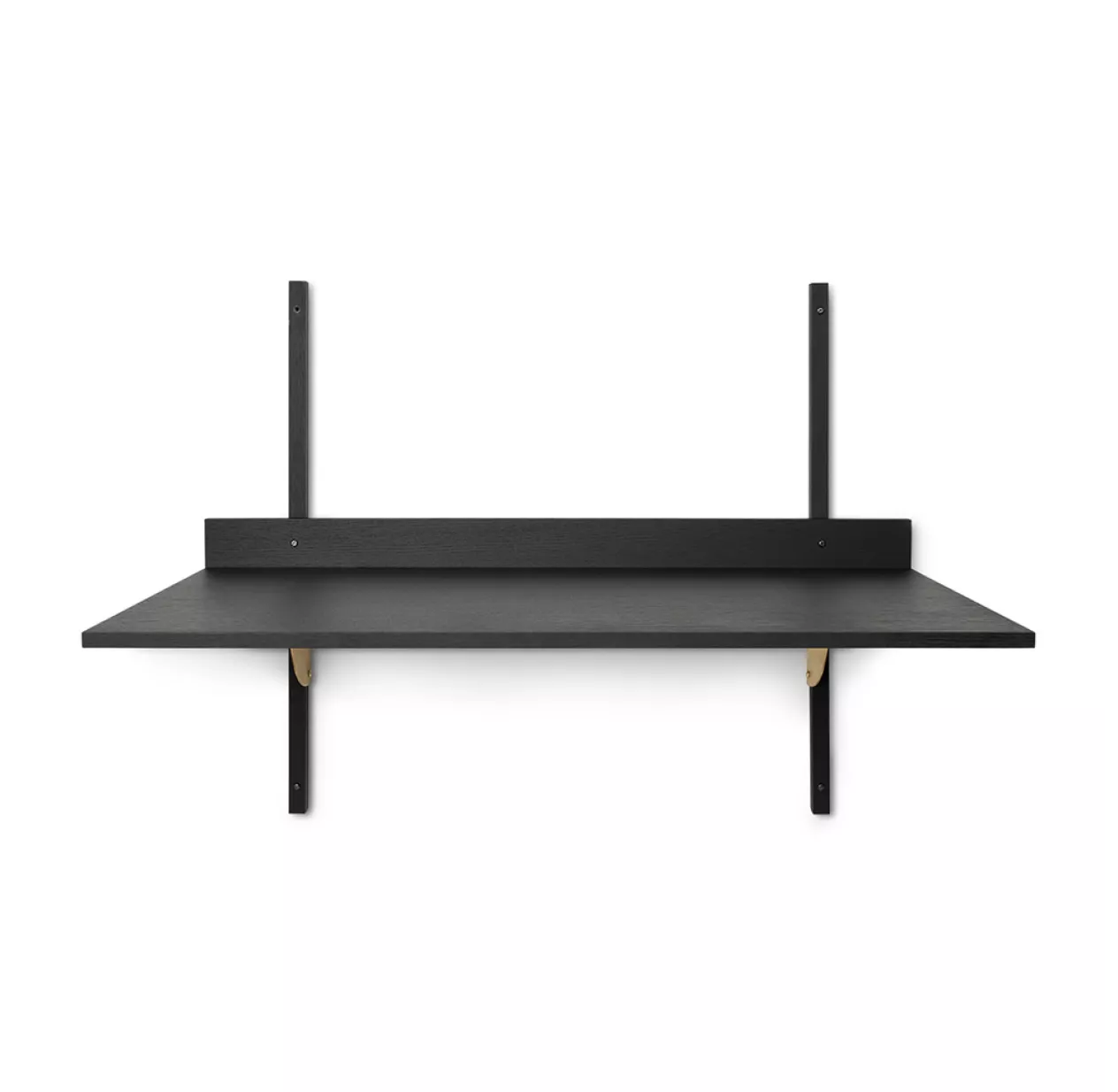 Le système modulaire Sector revisite l’étagère murale du milieu du siècle dans une version moderne et fonctionnelle. Le système mural Sector affirme une simplicité robuste dans un esprit naturel et minimaliste. Cette version du bureau mural Sector associe placage de frêne teinté noir et laiton. Il est aussi disponible en placage de chêne naturel et ses supports en laiton poli existent également en laiton noirci. Le bureau mural Sector de Ferm Living se fixe au mur avec des montants en bois massif et des vis apparentes. Il est idéal pour créer un espace de travail dans une petite chambre, un hall d’entrée ou dans un coin du salon. Il s’associe parfaitement aux étagères Sector qui se déclinent dans les mêmes couleurs et finitions.