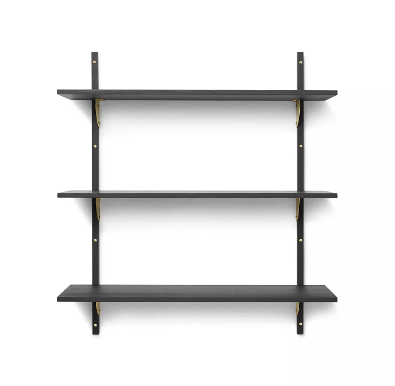 Le système modulaire Sector revisite l’étagère murale du milieu du siècle dans une version moderne et fonctionnelle. L’étagère Sector affirme une simplicité robuste dans un esprit naturel et minimaliste. Dans cette version Large et triple, l’étagère Sector associe placage de frêne teinté noir et laiton. Elle est aussi disponible en placage de chêne naturel et ses supports en laiton poli existent également en laiton noirci. L’étagère Triple Sector Large de Ferm Living se fixe au mur avec des montants en bois massif et des vis apparentes. Elle est idéale pour mettre en scène vos objets préférés dans une chambre enfant, un salon, des plantes ou des pots de rangement dans une cuisine. Elle s’associe parfaitement au bureau mural Sector qui se décline dans les mêmes couleurs et finitions.