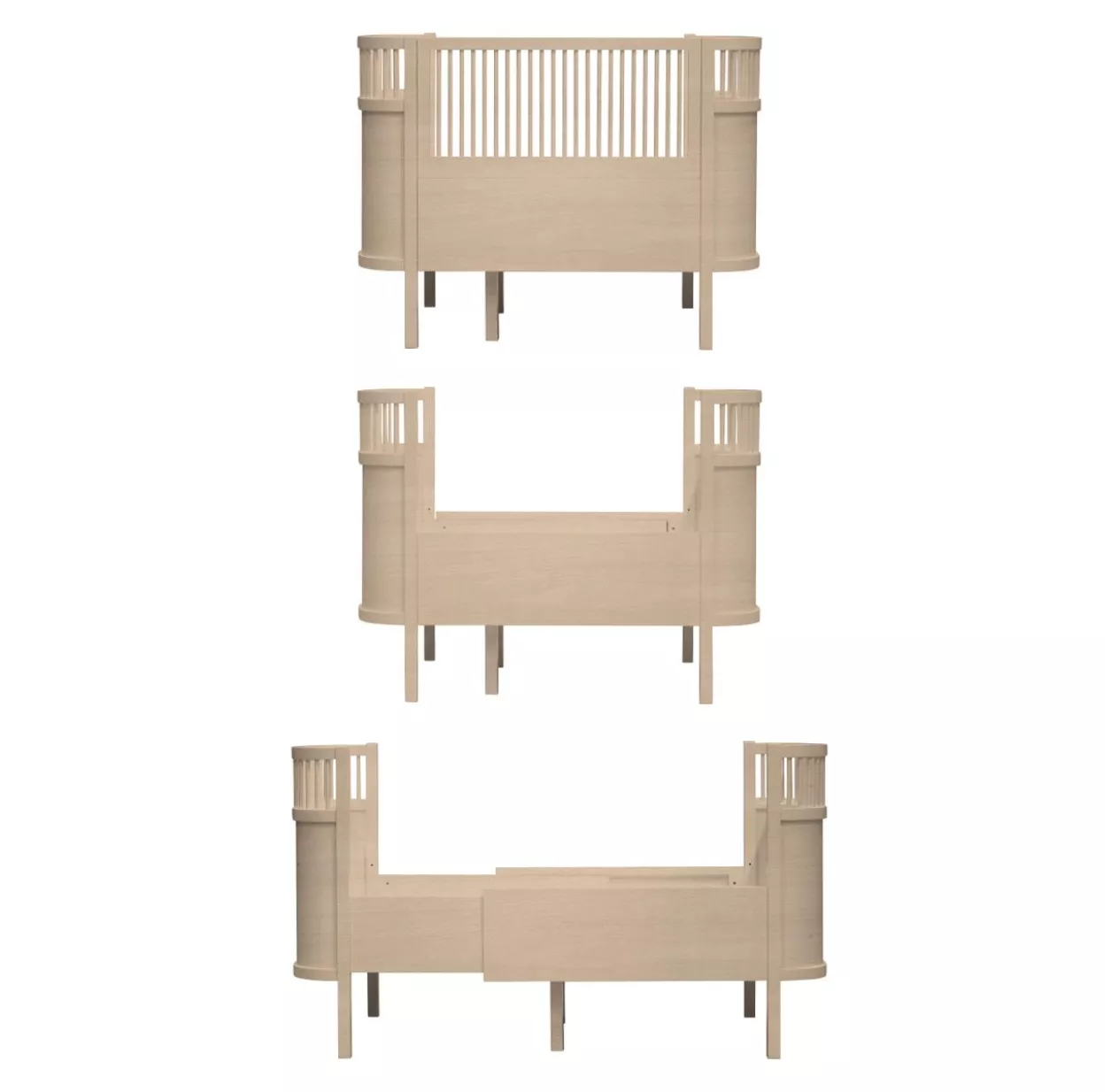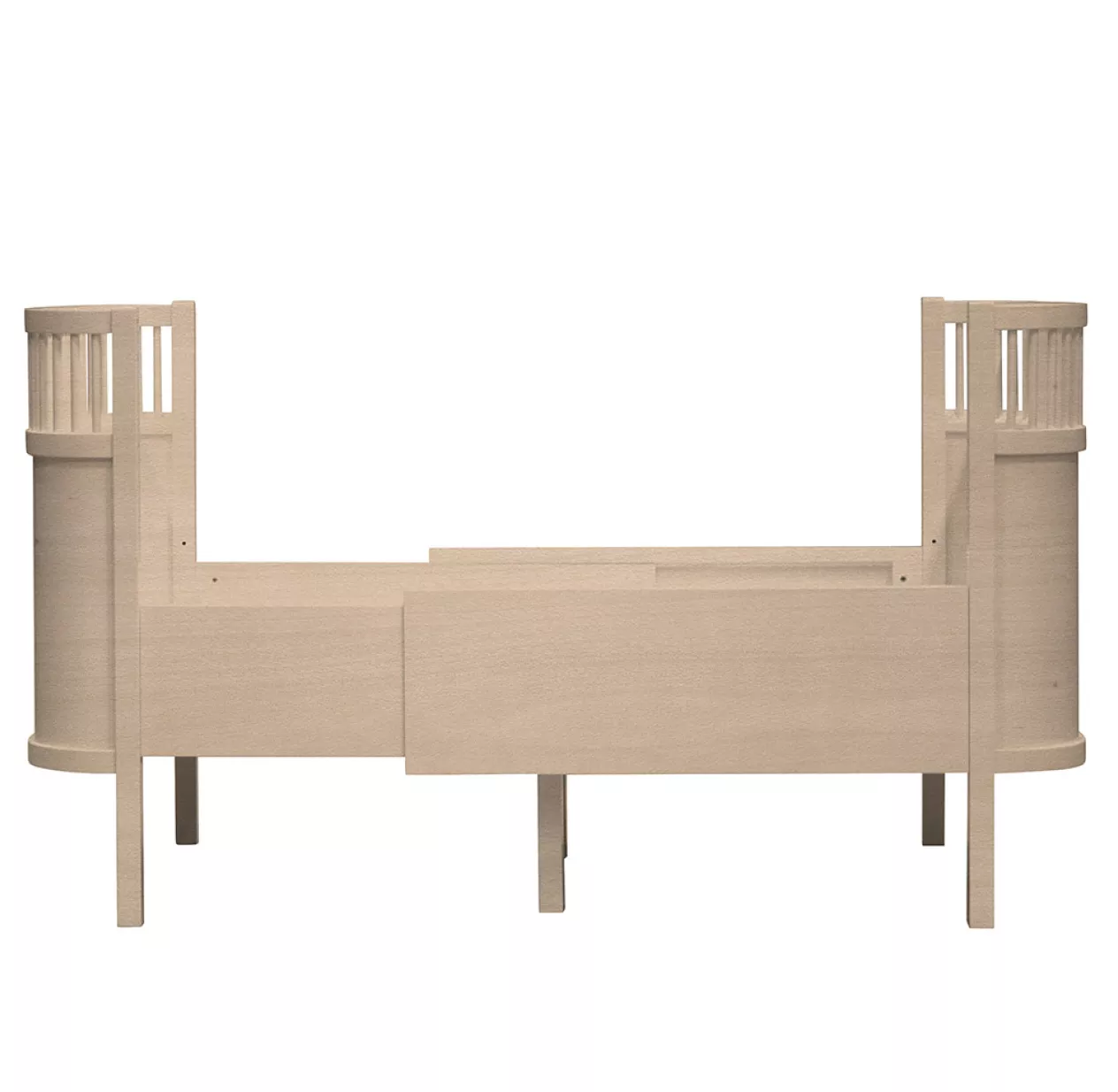Le lit Sebra dans sa version junior offre une configuration sans rambarde. Le sommier extensible est déployé pour offrir un couchage de 155 cm de long. Il convient à l’enfant devenu trop grand pour le lit intermédiaire.