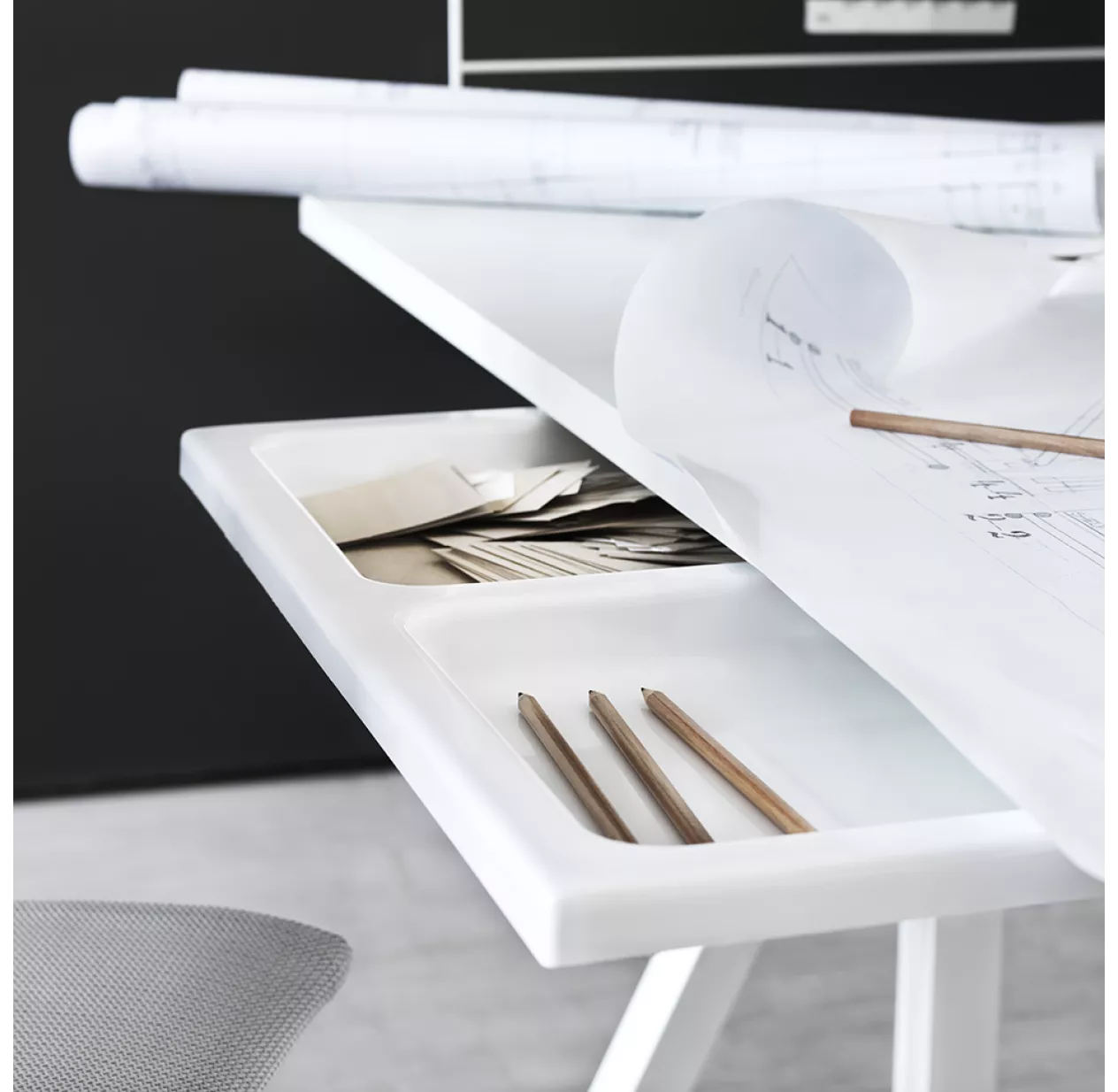 Créez plus de rangements, grâce au tiroir qui s’adapte sur le plateau de bureau pour piètement.