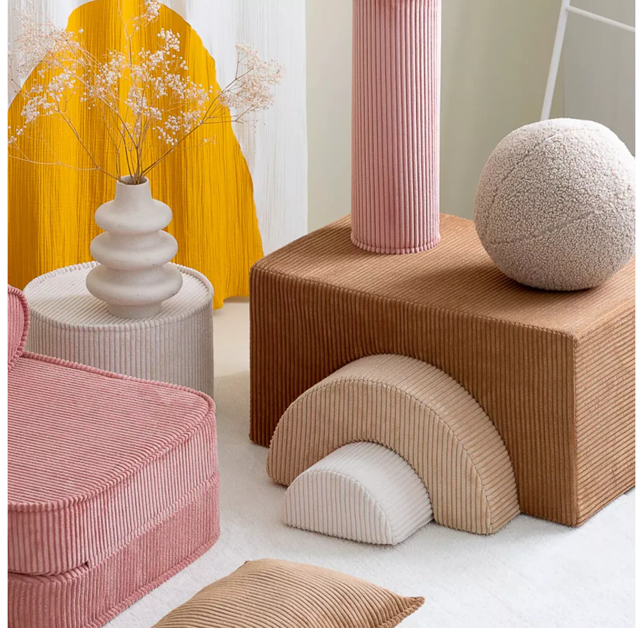 Coup de coeur pour ce trio de poufs arc-en-ciel en velours côtelé large d’une douceur folle. Cet ensemble ludique est à la fois pratique et beau. Il stimulera l’imagination de vos enfants qui en feront un bureau, un pont, un circuit de voiture, un cheval à bascule… Les poufs Wigiwama sont tellement déco qu’ils trouveront leur place partout dans la maison ! Cet ensemble de poufs Wigiwama est facile à déplacer au gré des lectures et activités dans la chambre des enfants. Il est déhoussable grâce à sa fermeture zippée discrète.