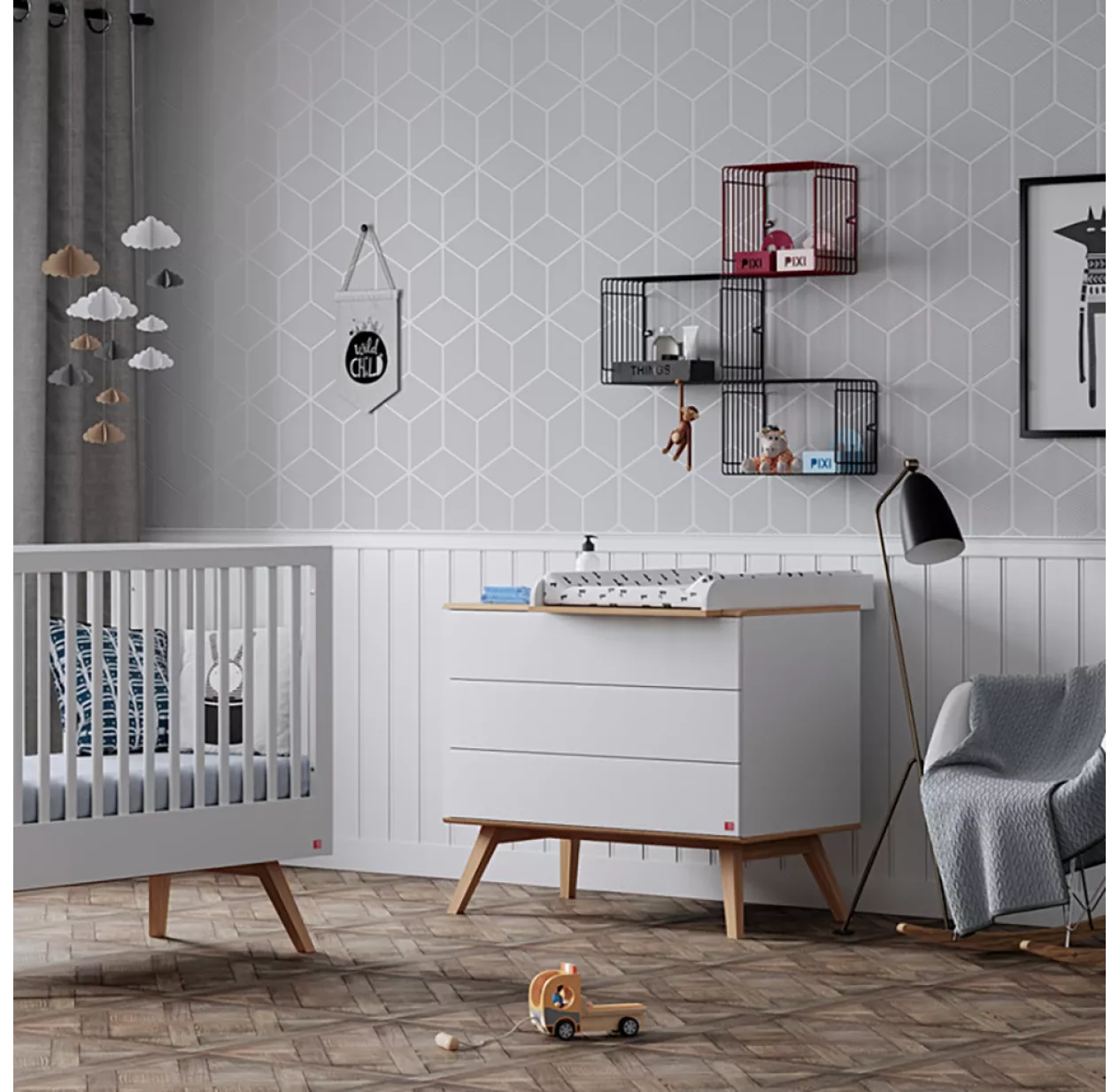 La commode blanche de la collection Nature de Vox allie simplicité et modernité. Pour une chambre de bébé fonctionnelle, vous pouvez l’associer au plan à langer de la même collection (vendu séparément, il est disponible en option). La commode est idéale pour ranger les petits vêtements de votre enfant. Gain de place assuré dans sa chambre. Succombez à toute la collection Nature de la marque pour créer une chambre de bébé complète, harmonieuse et design.